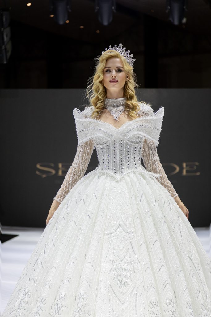 Defilenin baş mankeni ünlü oyuncu Wilma Elles’in gelinlik giymesi geceye ayrı bir zarafet ve yıldız ışıltısı kattı. Wilma Elles’in podyumdaki duruşu, defilenin en çok konuşulan anlarından biri oldu.